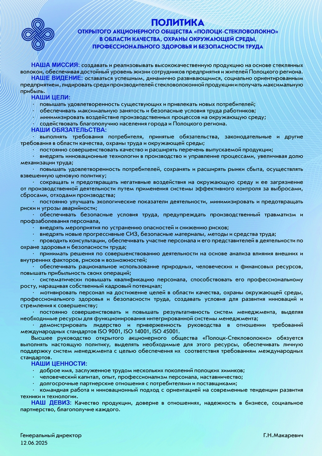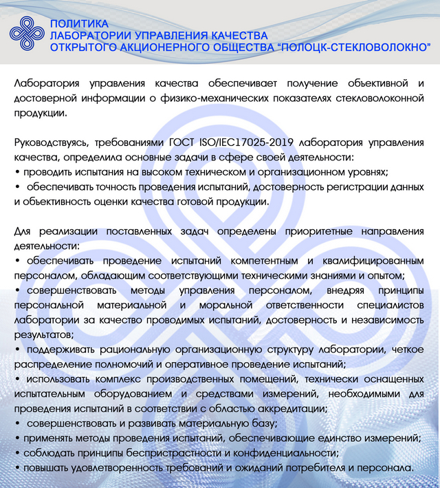 Имея огромный опыт работы, современное оборудование, высокие технологии и научный потенциал, коллектив открытого акционерного общества «Полоцк-Стекловолокно» готов решать любые задачи!