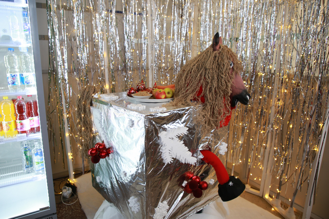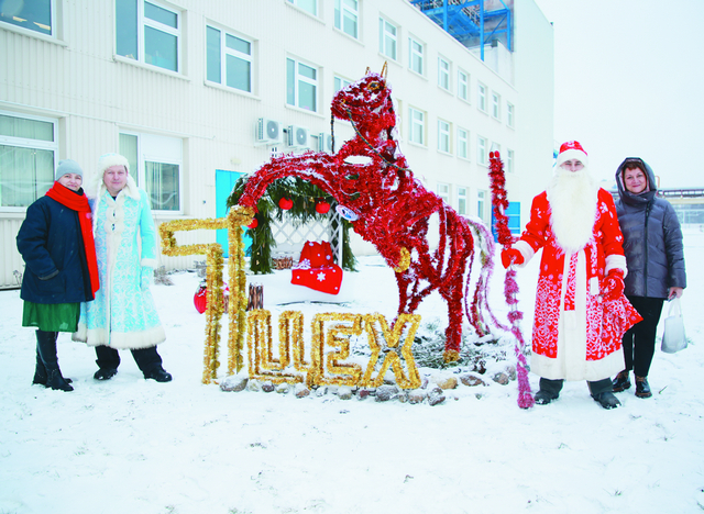 К ним прибавились шуточные стихотворные поздравления от самого покровителя Нового года: Я, конь-огонь, встречаю вас сегодня, Желаю счастья, крепкого здоровья. Пусть год мой щедро всех озолотит, И путеводная звезда успеха ярко вам горит… А как же без сказки? Поздравления от Деда Мороза, Снегурочки и других любимых сказочных героев в цехах № 7, 8, 9 подарили незабываемые эмоции и праздничное настроение конкурсной комиссии. Особую веру в волшебство привнесли теплые пожелания от службы охраны.